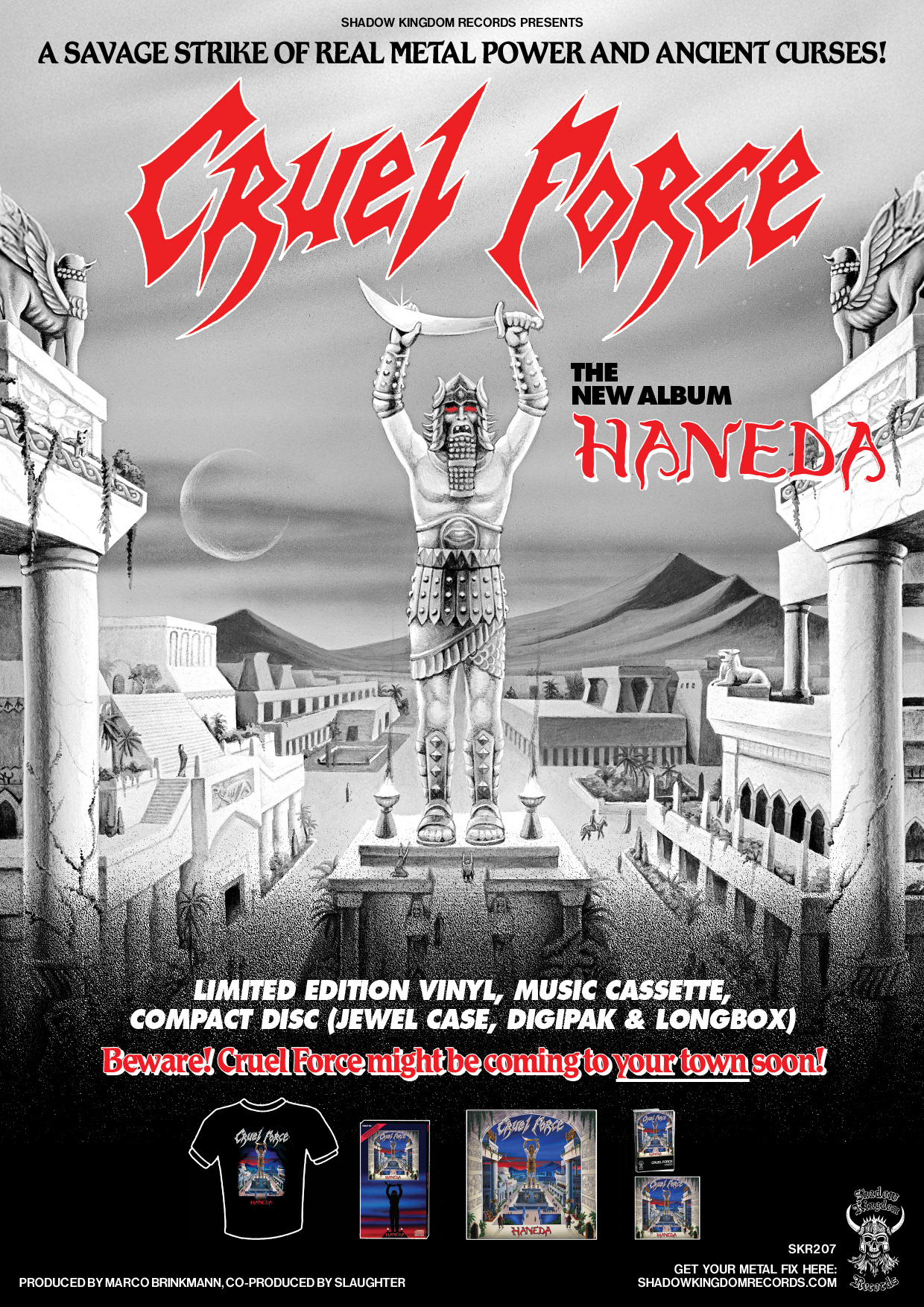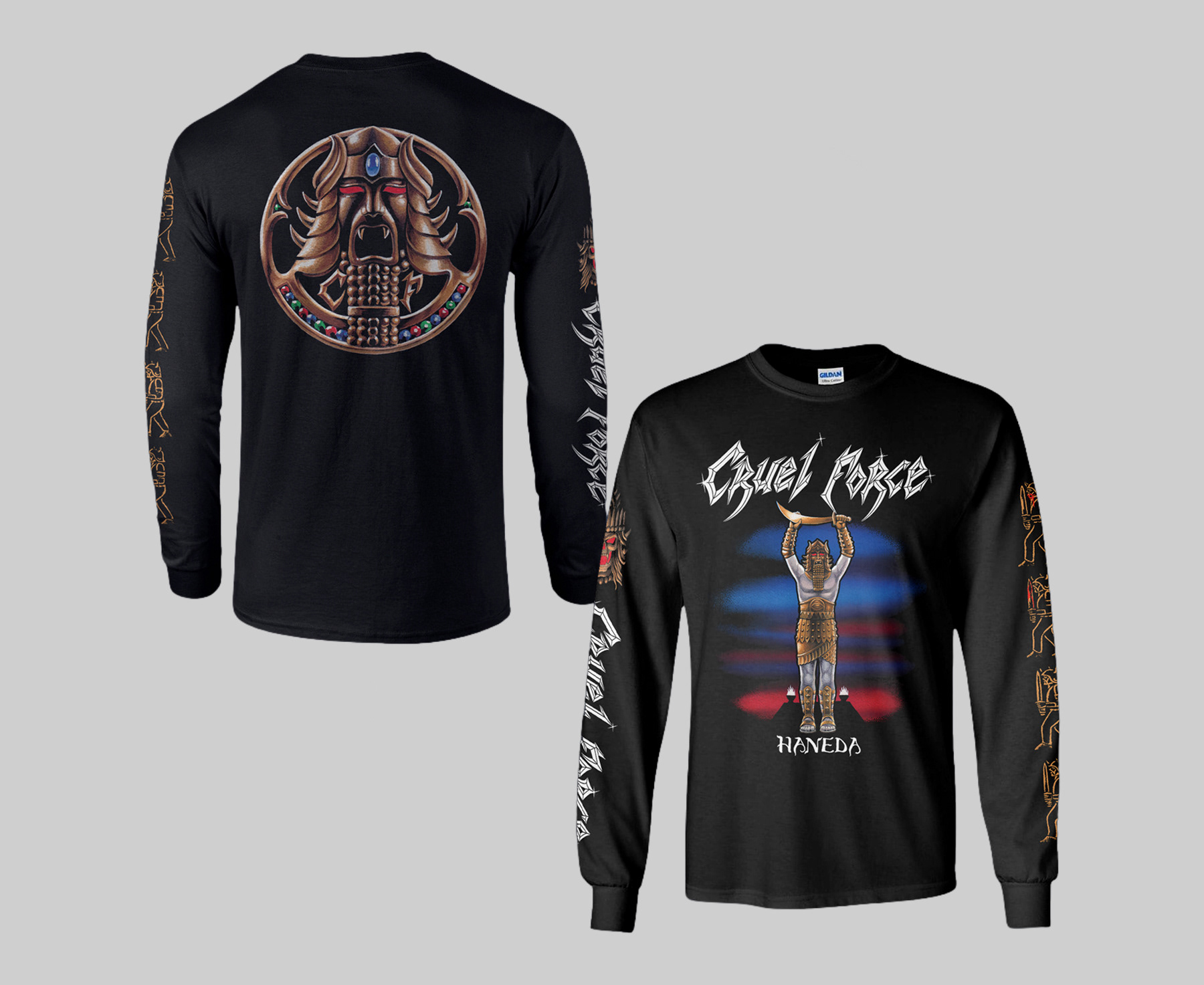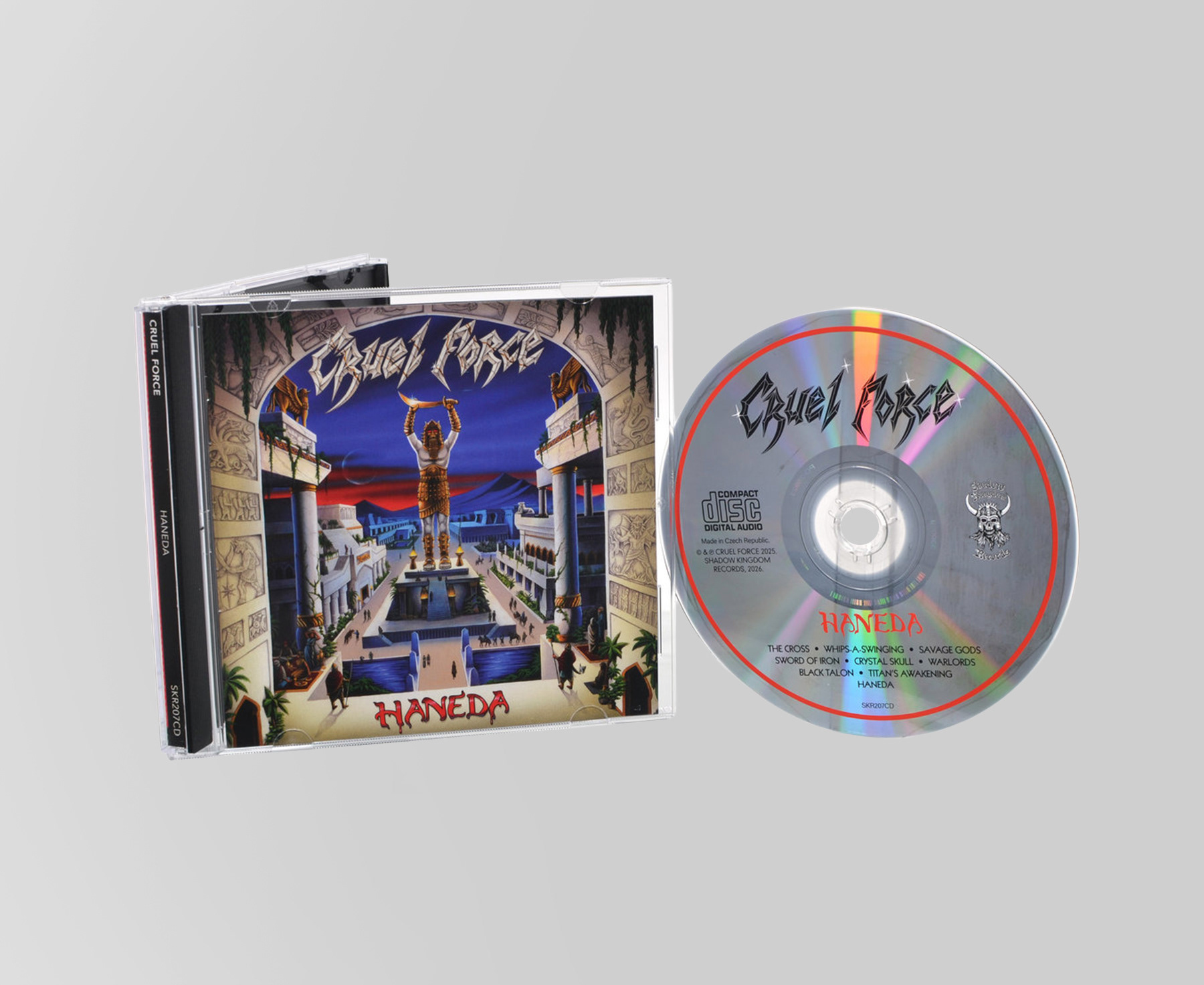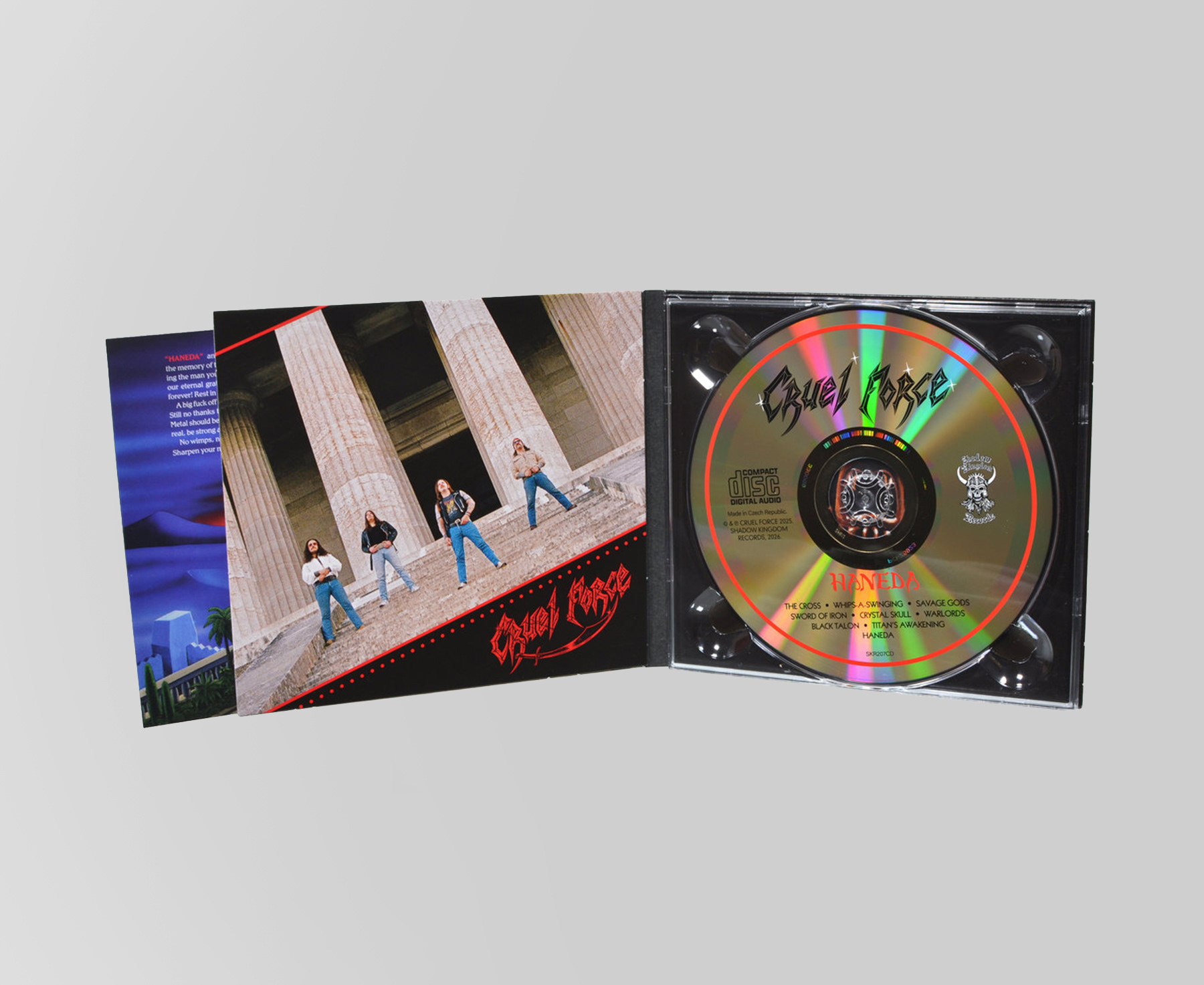Art direction and graphic design for Haneda by Cruel Force, including various formats and promotional material. Inspired by early ’80s heavy metal nostalgia and vintage typography, the design captures a classic, teutonic metal aesthetic.