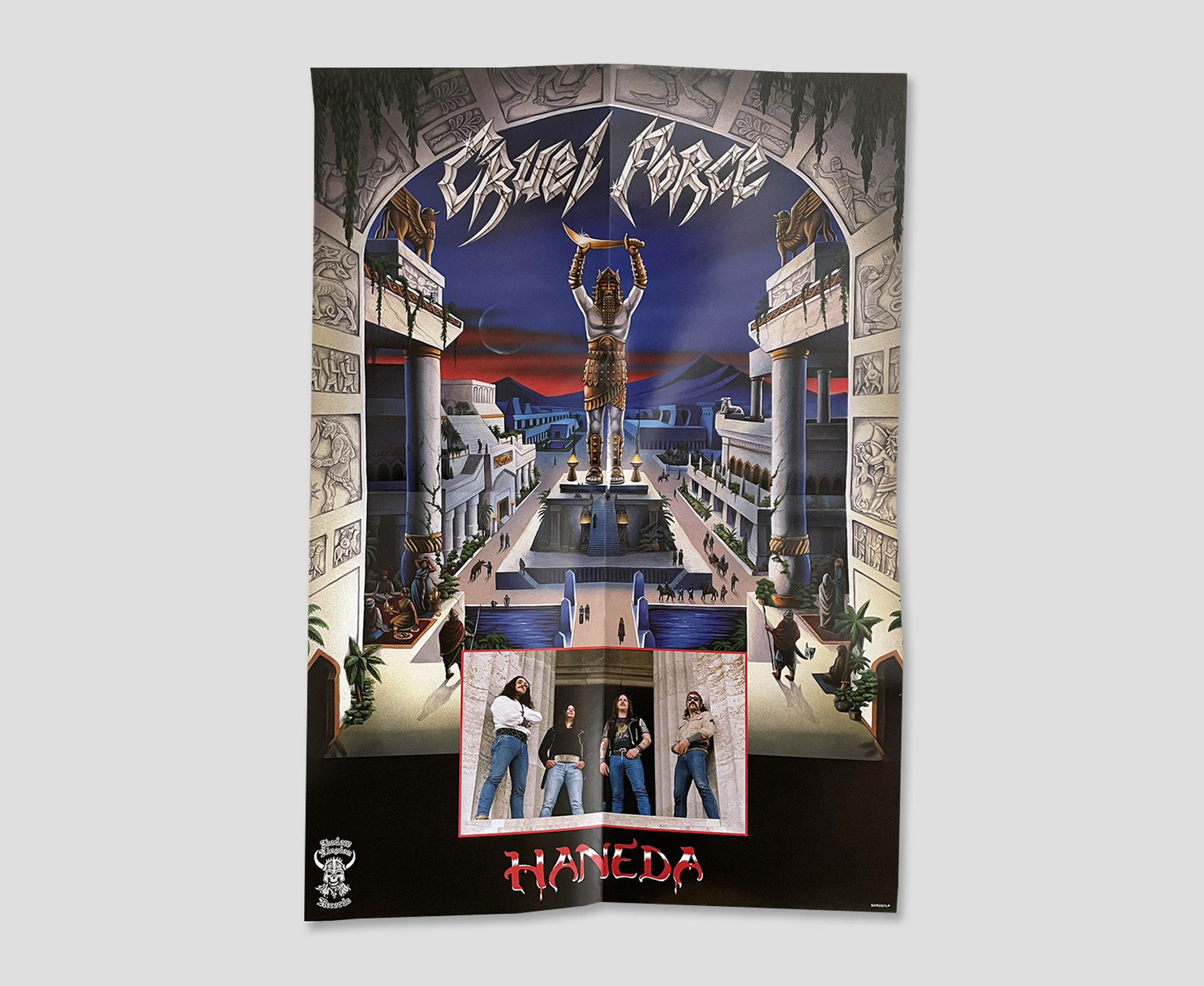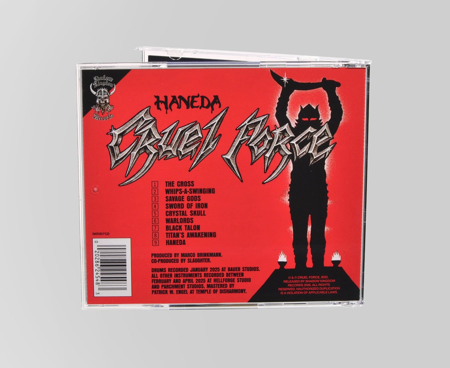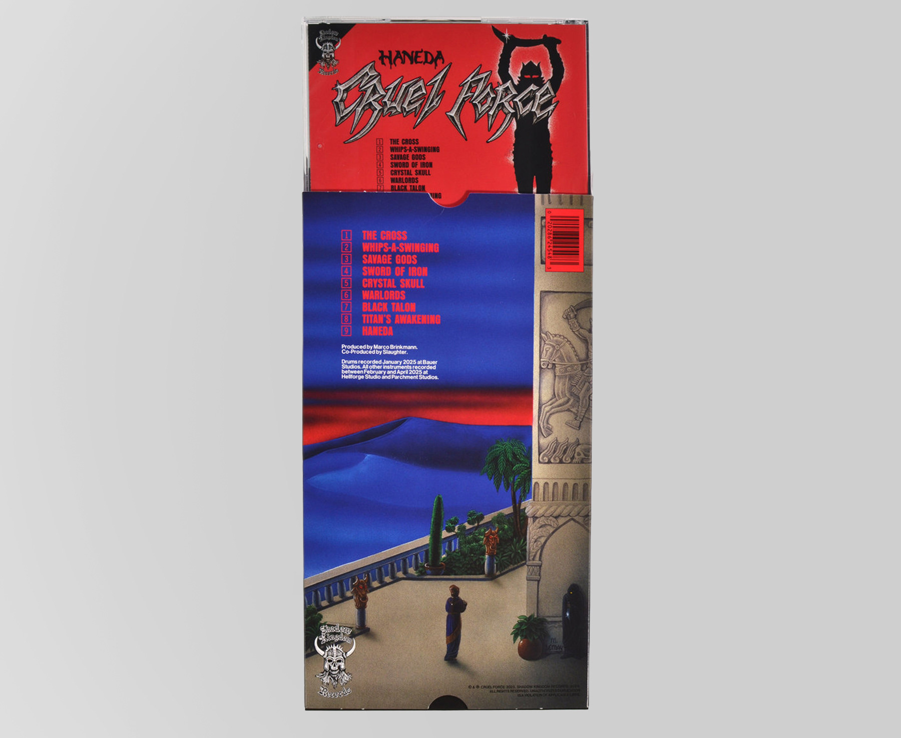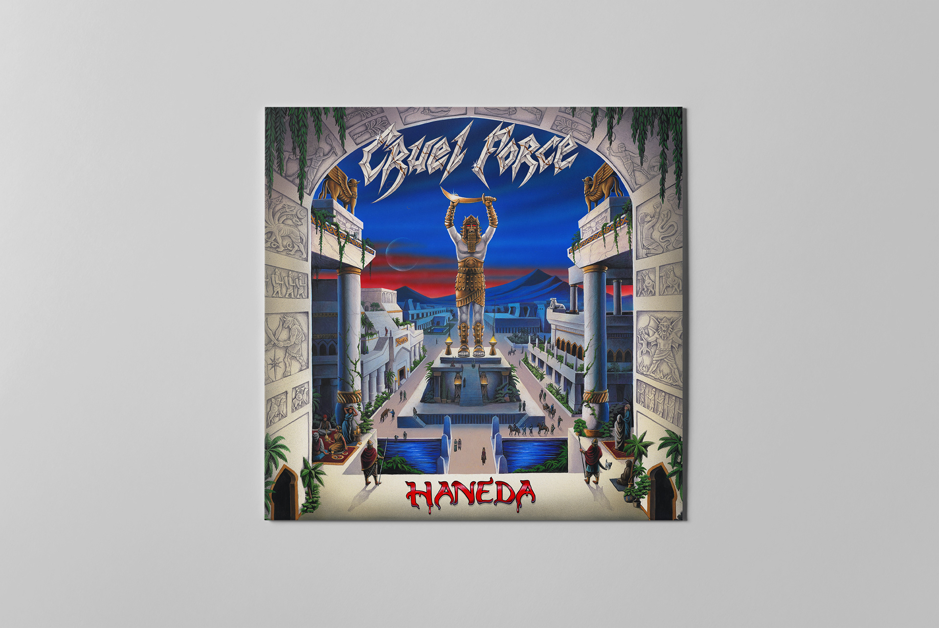 Art direction and graphic design for Haneda by Cruel Force, including various formats and promotional material. Inspired by early ’80s heavy metal nostalgia and vintage typography, the design captures a classic, teutonic metal aesthetic.