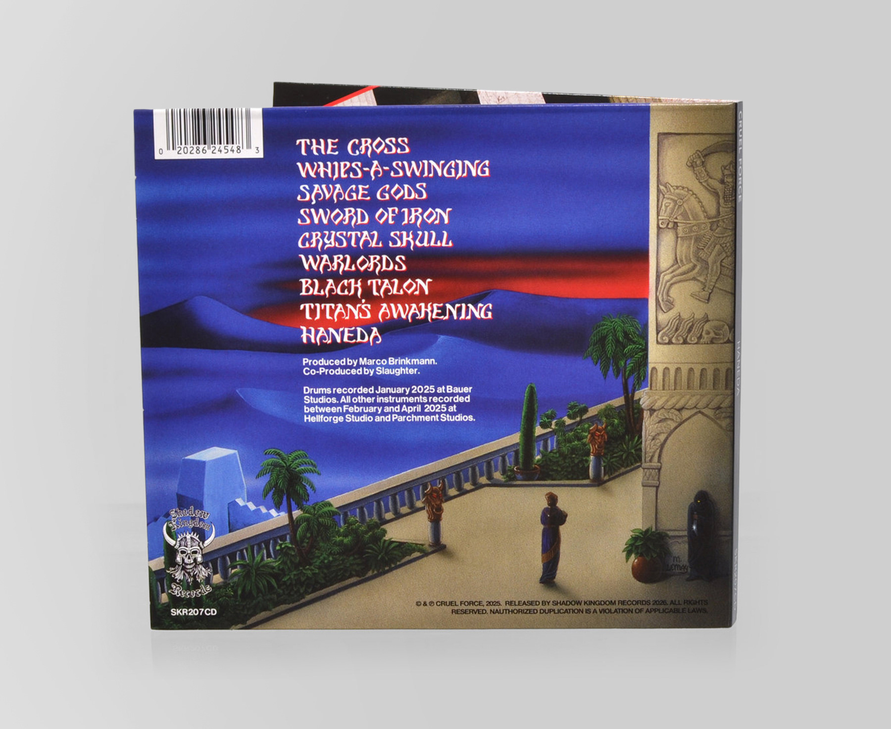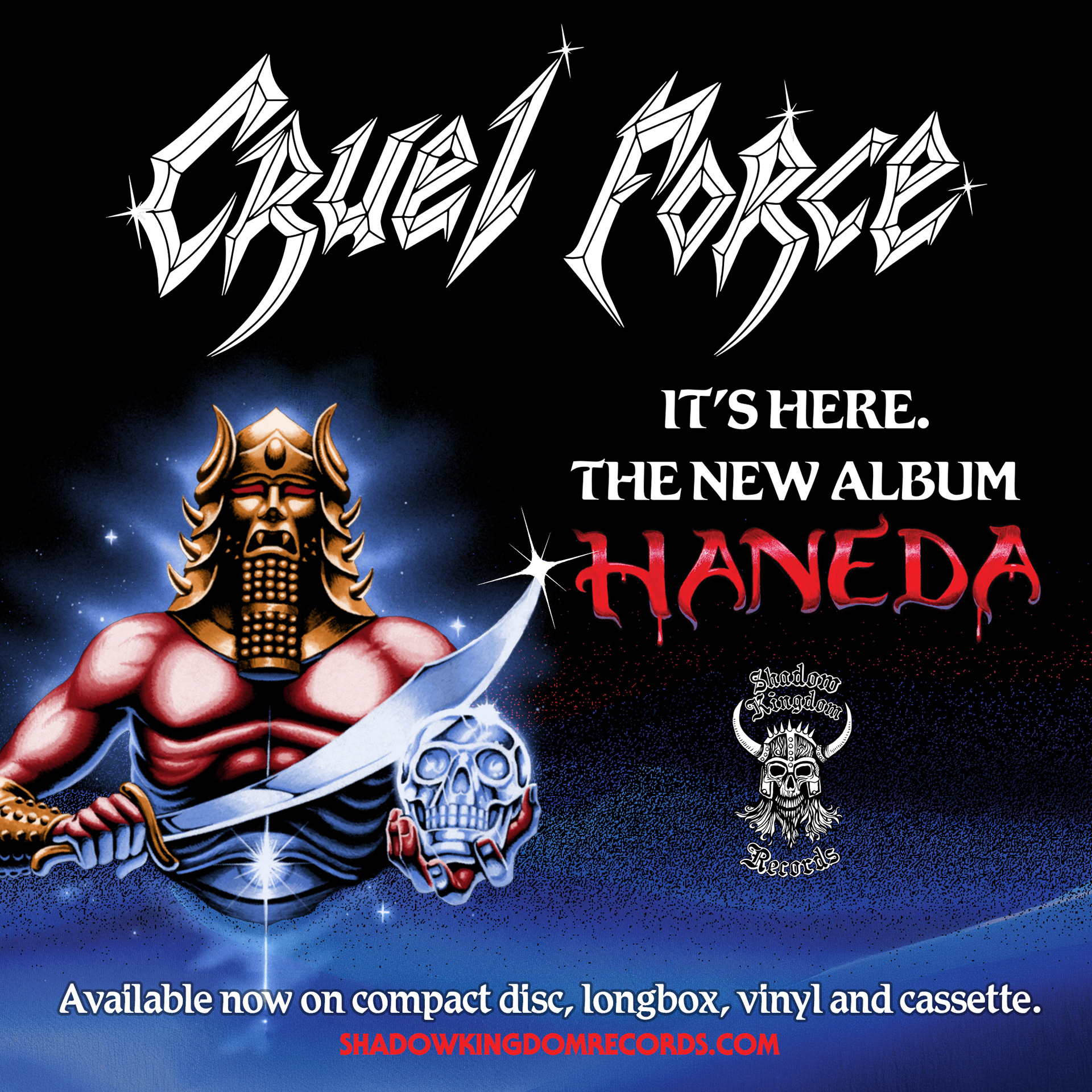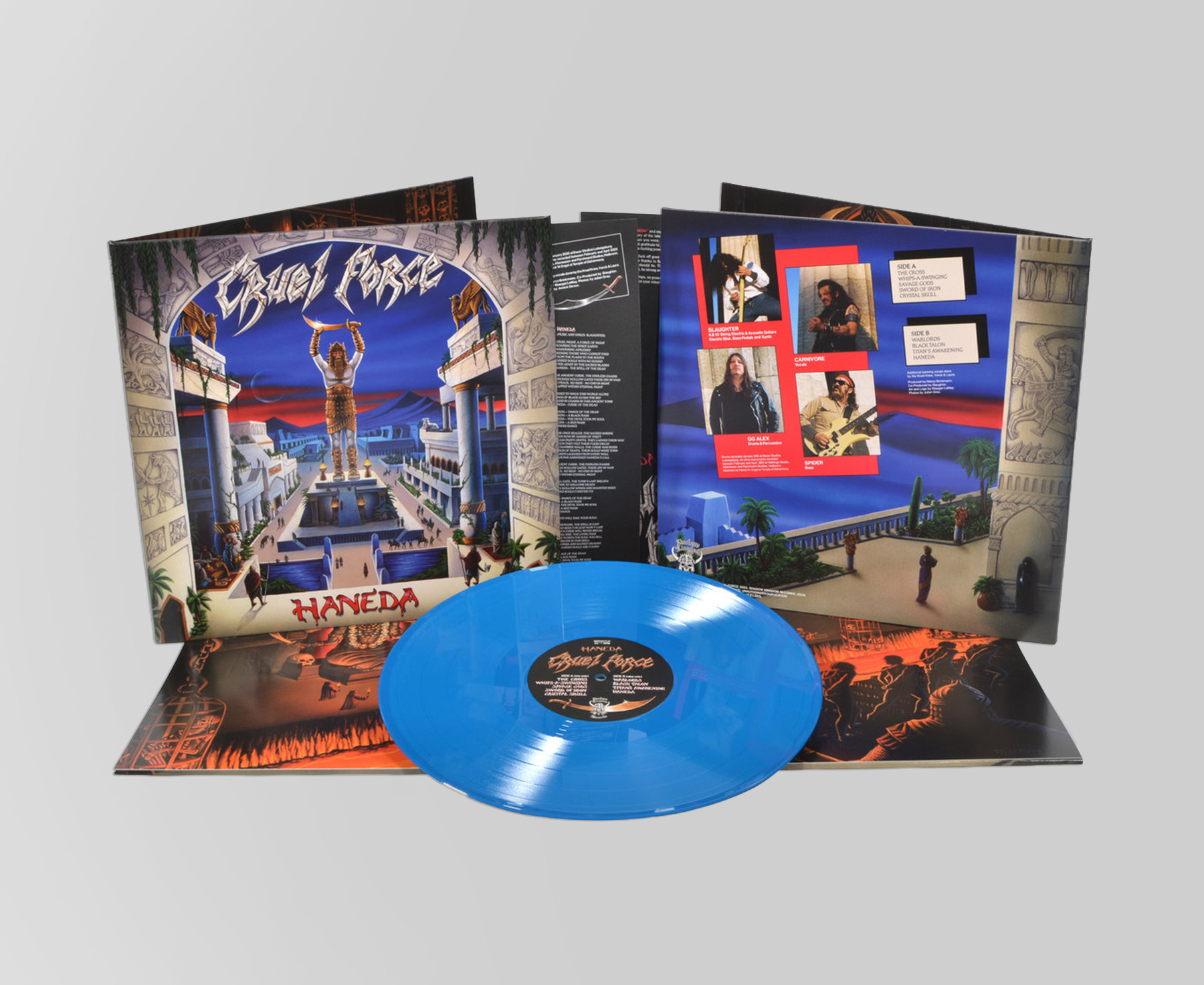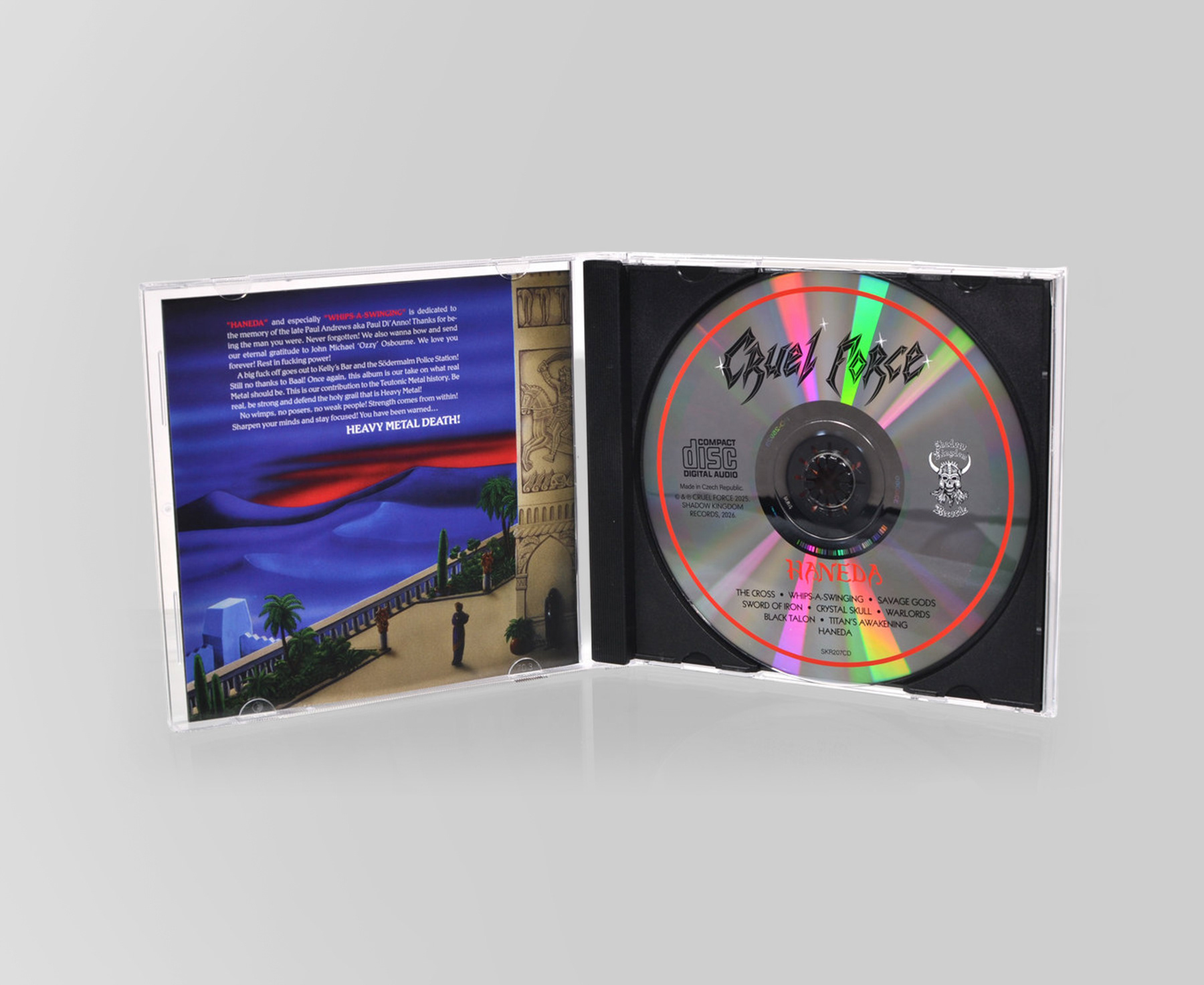 Art direction and graphic design for Haneda by Cruel Force, including various formats and promotional material. Inspired by early ’80s heavy metal nostalgia and vintage typography, the design captures a classic, teutonic metal aesthetic.