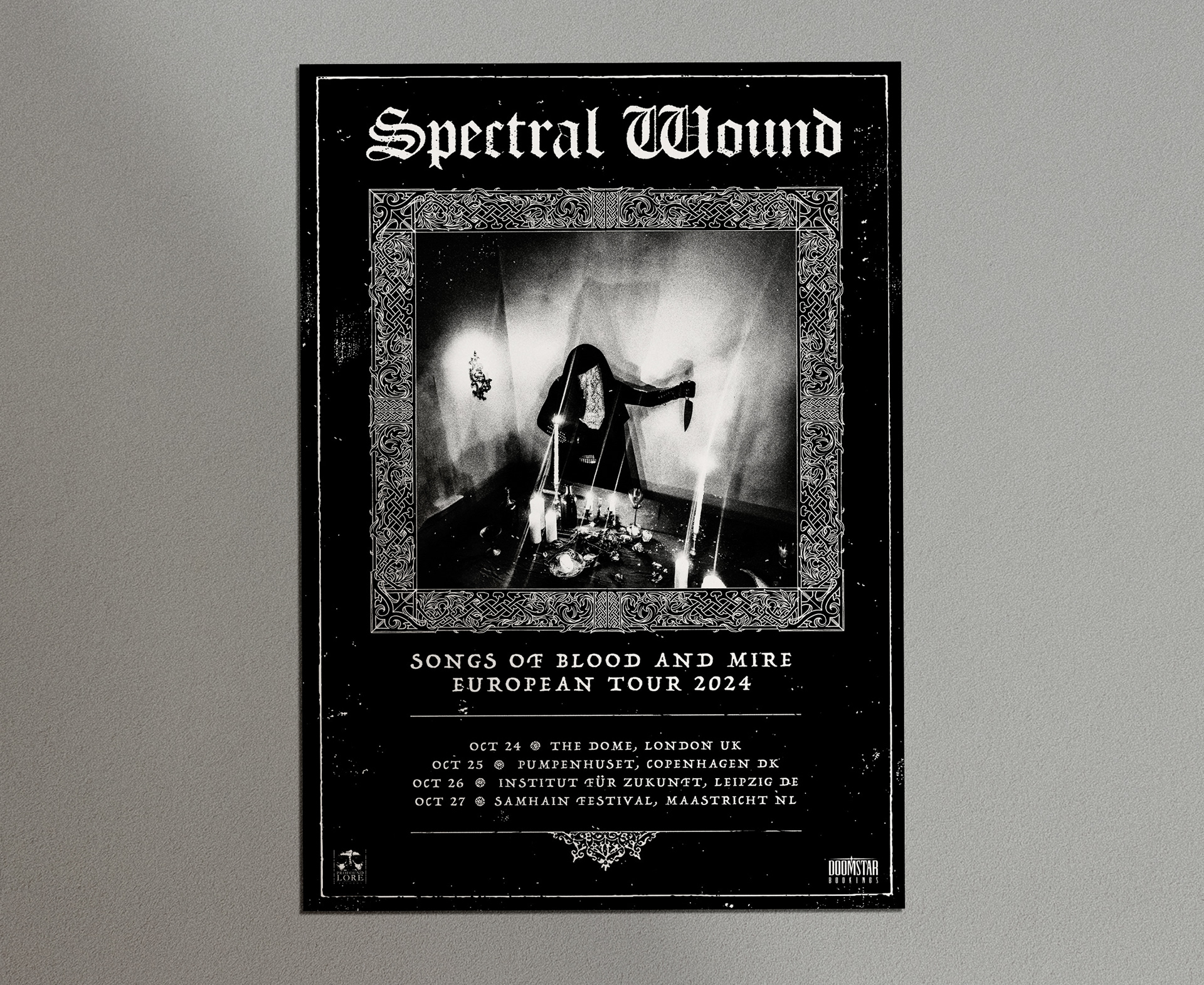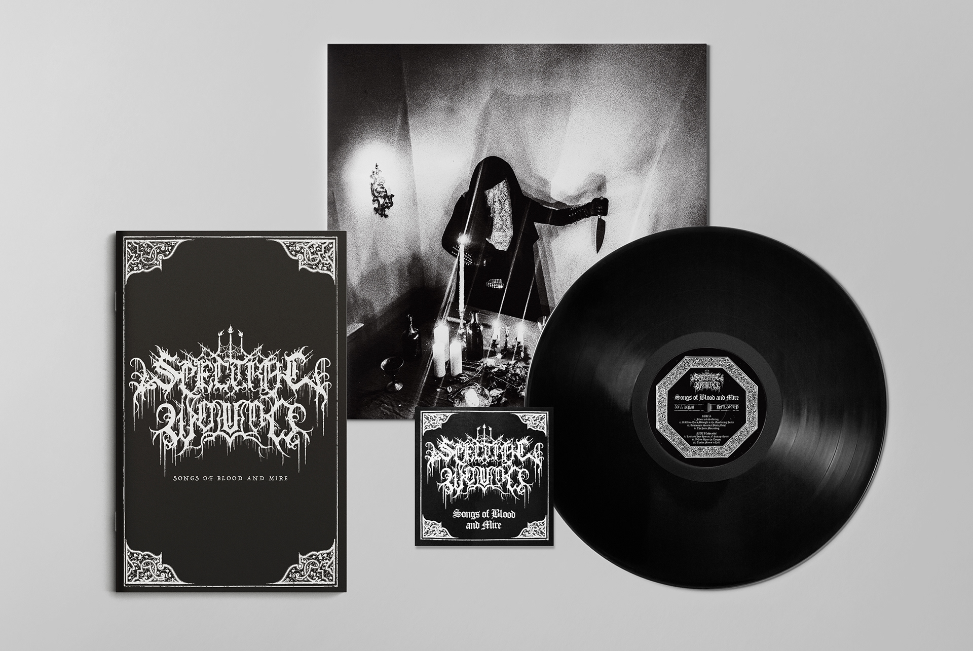 Graphic design for Songs of Blood and Mire by Spectral Wound, including an 18-page custom booklet. Also designed visual materials for the European tour following the album’s release.